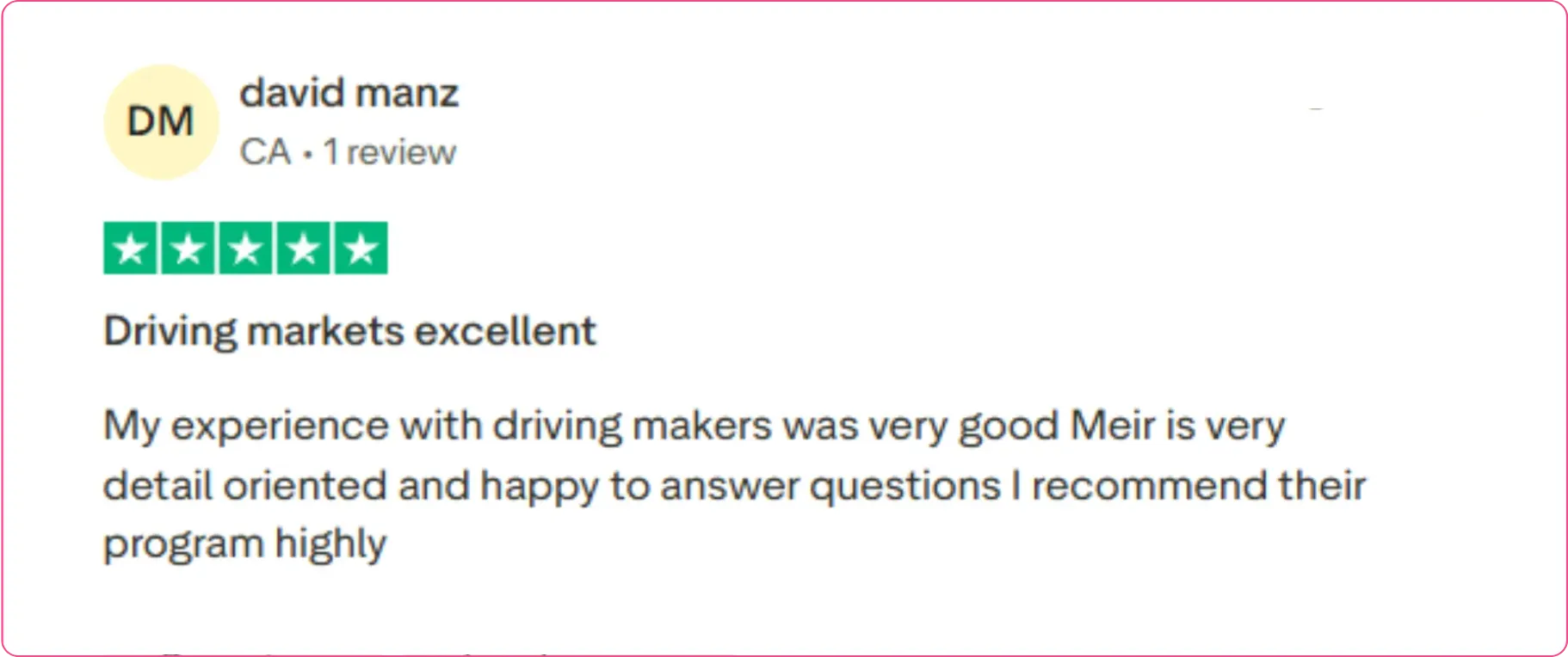 From first-time investors to seasoned professionals — see how DrivingMarkets has helped people trade with clarity and confidence.